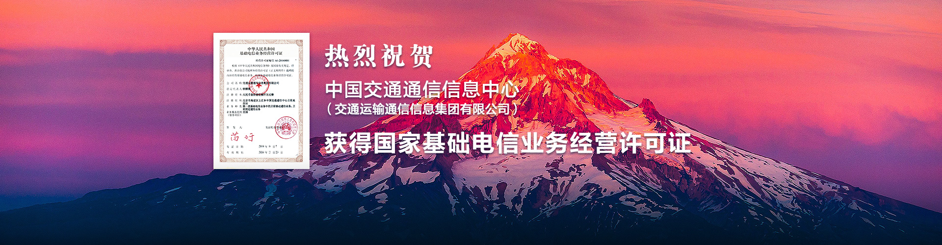 熱烈祝賀中國交通通信信息中心(交通運輸通信信息集團有限公司),獲得國家基礎電信業務經營許可證!